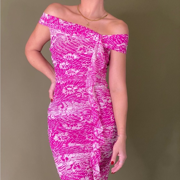 Dresses Pink And White Pattern Ruched Mesh Dress Size 6condition Very Good Poshmark