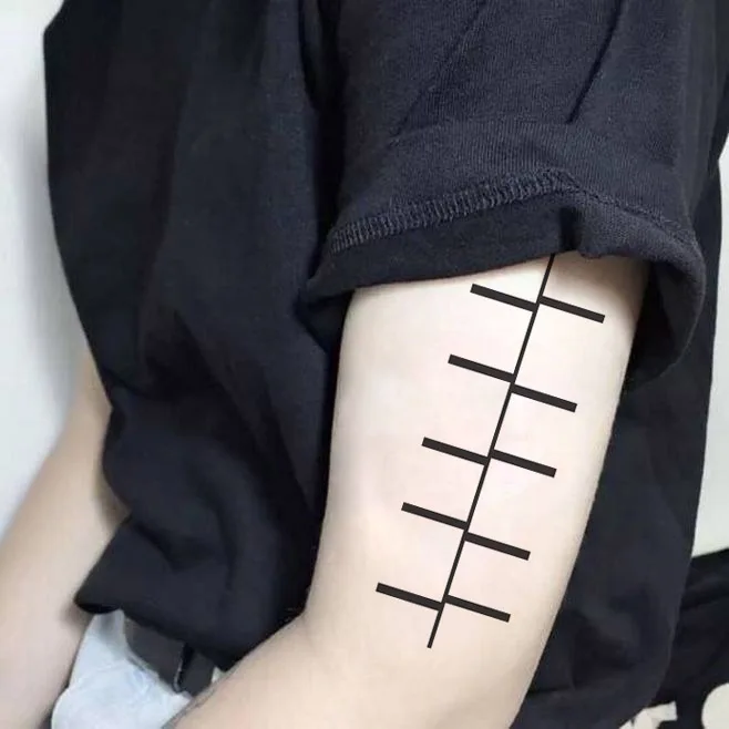 קנו קעקועים ואמנות גוף Black Geometry Triangle Temporary Tattoo Sticker Waterproof 3d Arrow Adult Men Women Arm Shoulder Music